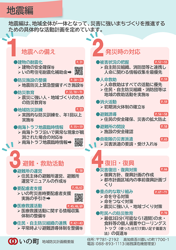令和7年3月に「いの町地域防災計画」を修正しました。