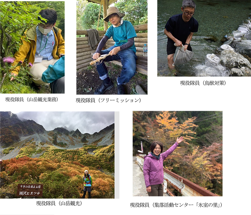 - 山岳観光業務(2名)・フリーミッション(1名)・集落活動センター「氷室の里」(1名)・鳥獣対策(1名)