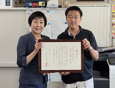 町の地方創生の取組に対し多額の寄付をいただきました有限会社尾﨑建設興業様に感謝の意を込め、令和7年10月6日に町長から感謝状の贈呈を行いました。