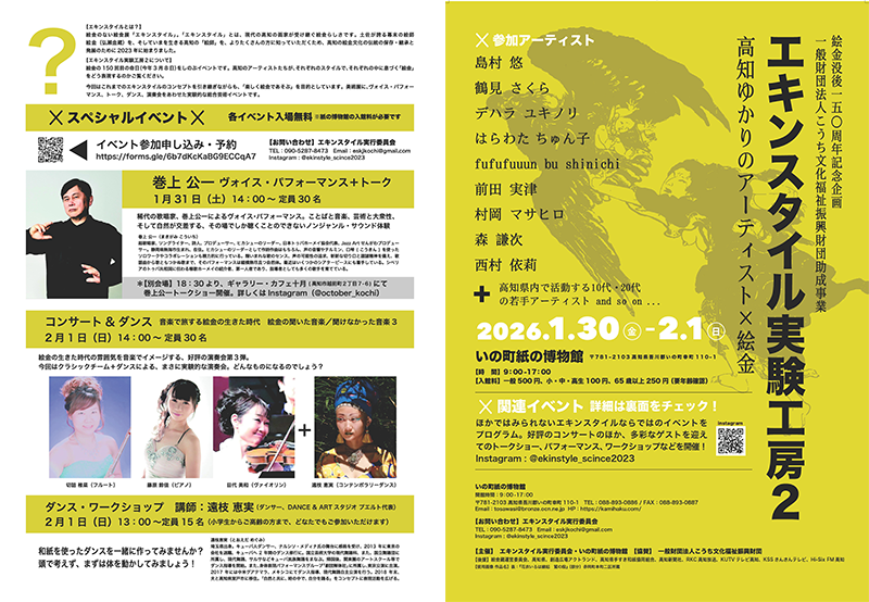 紙の博物館特別展「エキンスタイル実験工房2」は、高知が誇る絵師・絵金の世界を、現代のアートや音楽、パフォーマンスで楽しむ3日間限定の展示会です。