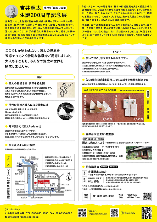| 展示会名 | 生誕200周年記念展「紙をすく人 吉井源太-紙を漉き、土を鋤き、人を結き、町を助く。」 |
