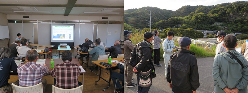 令和7年10月30日、愛媛県の内子町林業研究グループ12名が当町の森林・林業行政の取組や森林整備を行った施業地の視察に来町されました。