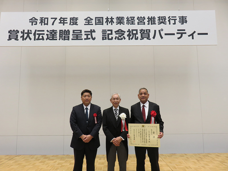 公益社団法人大日本山林会(総裁 秋篠宮皇嗣殿下)が主催する第64回農林水産祭「全国林業経営推奨行事」において、有限会社伊藤林業が栄えある農林水産大臣賞を受賞され、11月6日に秋篠宮皇嗣殿下ご臨席の下、賞状の伝達贈呈式が行われました。この賞は、森林の適正な管理並びに林業の技術・経営の改善に努め、森林の有する多面的機能の発揮及び林業の持続的かつ健全な発展に寄与している森林の管理経営体を表彰するものです。